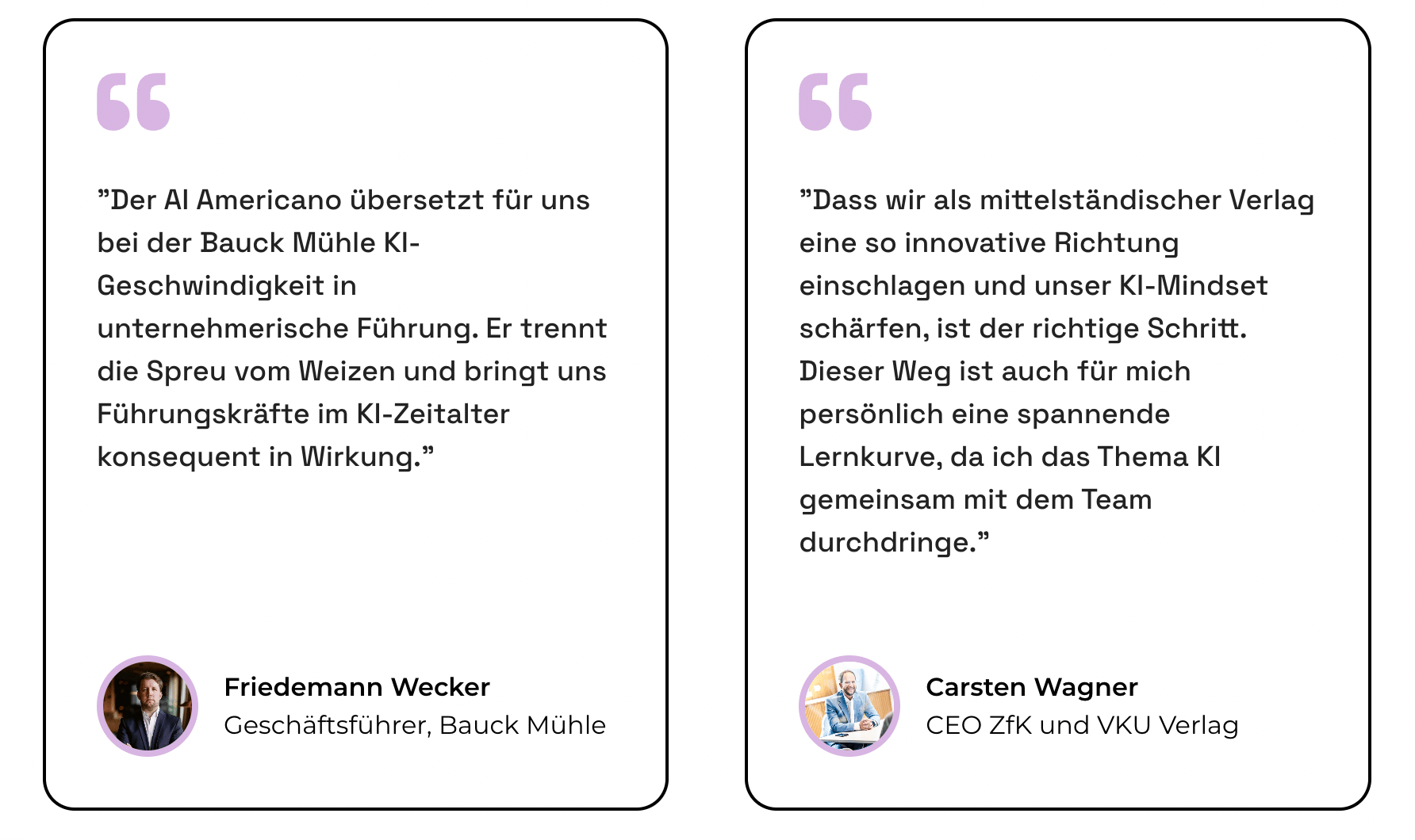 Soziale Sicherheit: Von einer Maschine zu lernen, wie man nicht von Maschinen ersetzt wird, fühlt sich bedrohlich an. AI Americano ist ein menschliches Ritual. Es schafft einen „Lagerfeuer-Moment“ für das Team und baut Berührungsängste systematisch ab.