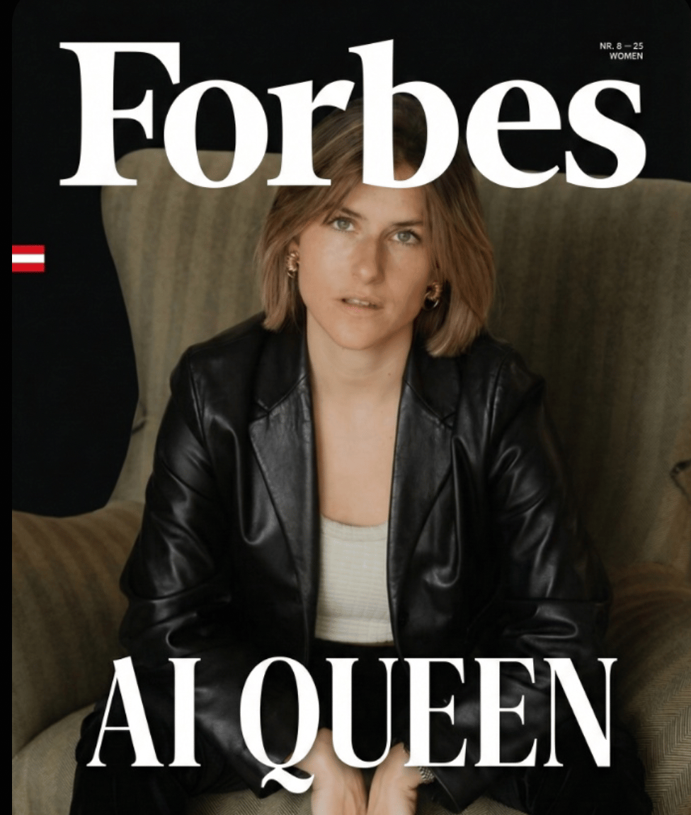 Prompt: Packe mein Foto auf das Forbes-Cover und betitle es mit “AI Queen”