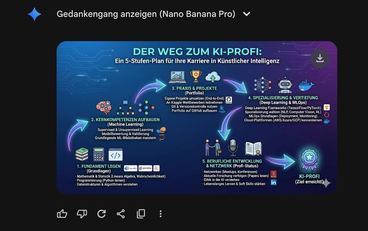 Prompt: Erstelle eine Infografik, wie man ein KI-Profi wird.